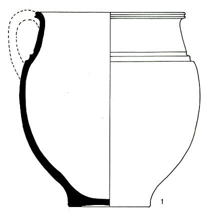 Pichet de forme ovoide ; encolure rentrante, rectiligne, rebord incliné vers l'extérieur, lèvre concave ;