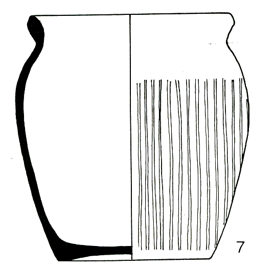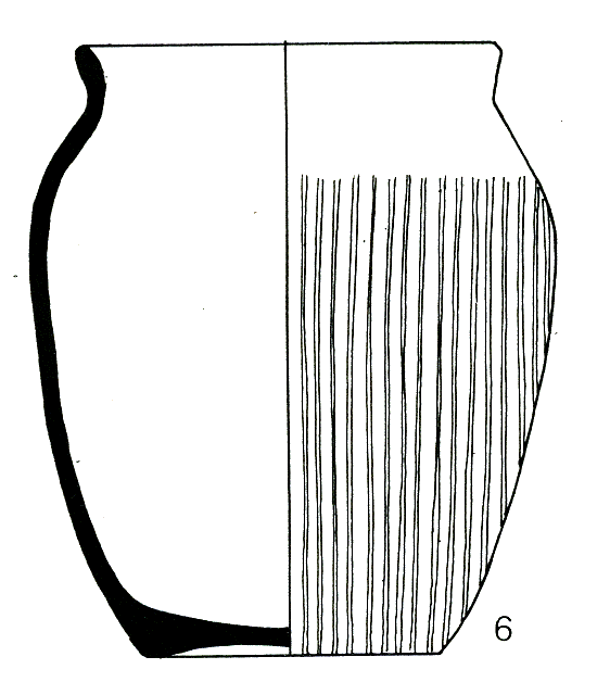 Pot de forme ovoide ; encolure verticale, concave, rebord épaissi à l'exterieur, lèvre en biseau ;