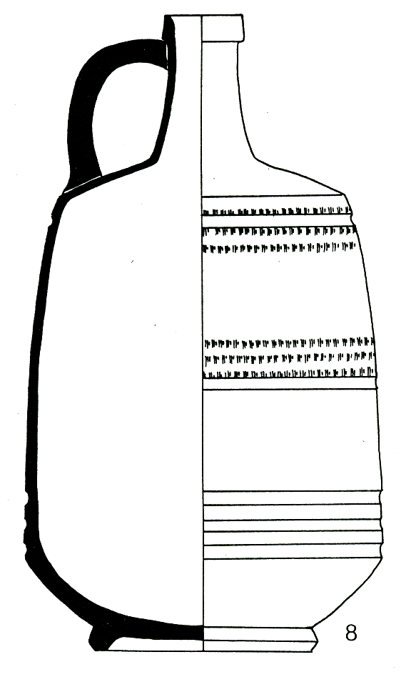 - Forme rencontrée à Blicquy (Belg.) au début du IIe siècle.(De LAET, 1972, p. 45, pl. 37, t. 134, n° 13).