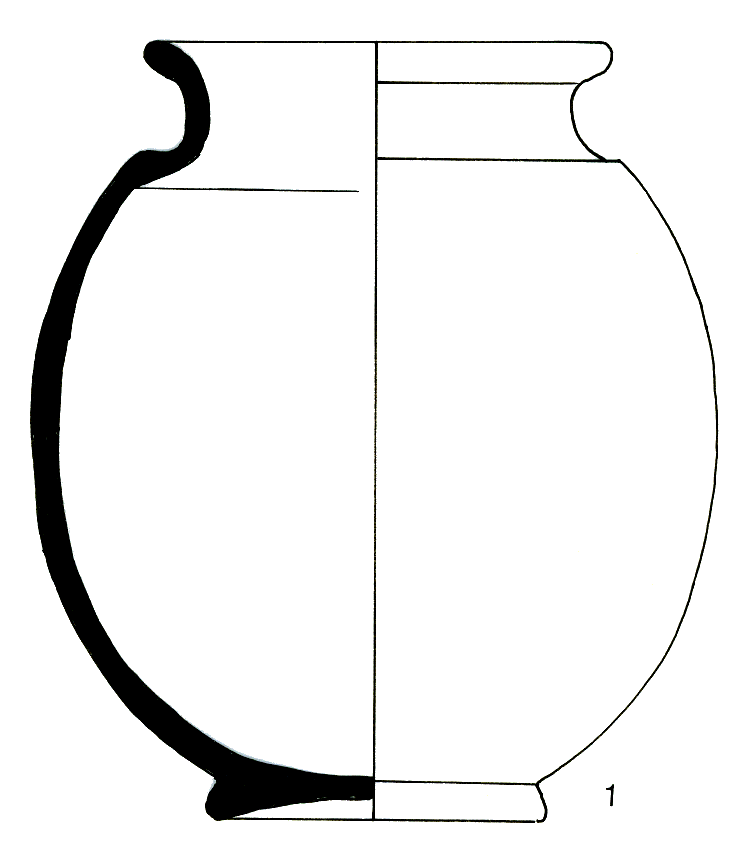 Pot de forme sphérique ; encolure verticale, concave, rebord incliné vers l'extérieur, lèvre ronde ; base élargie, assise concave ;