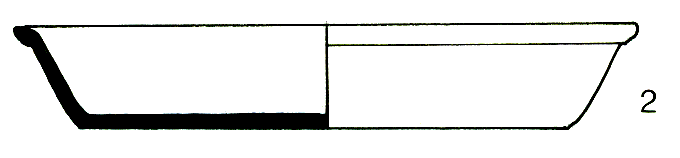 Plat aux parois divergentes convexes ; lèvre ronde ; base portante, assise avec anneaux porteurs;