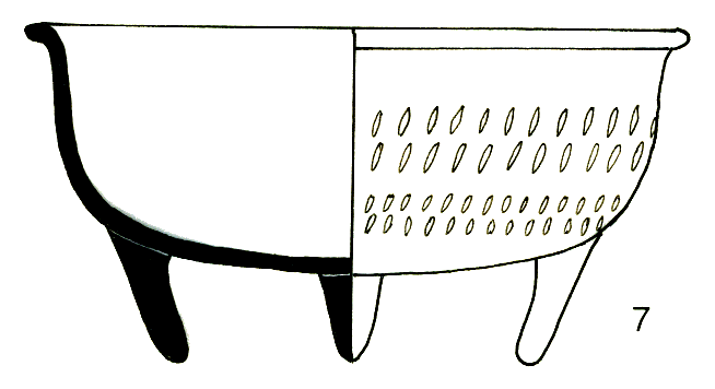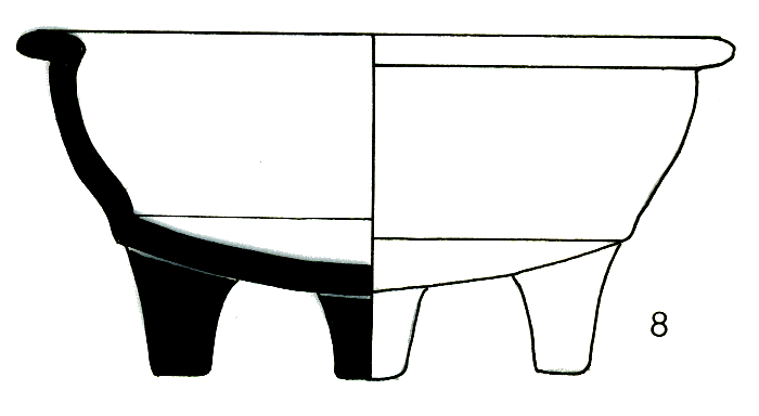 - C'est une production des céramiques dites à l'éponge (RAIMBAULT, 1973, p. 197 et pl. I, forme V).