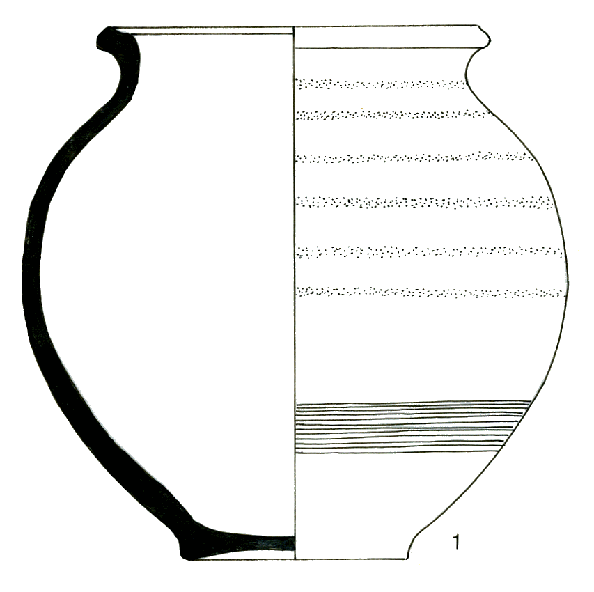 Pot de forme ovoide ; encolure verticale, concave, rebord épaissi à l'intérieur, lèvre ronde ; base portante ;