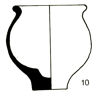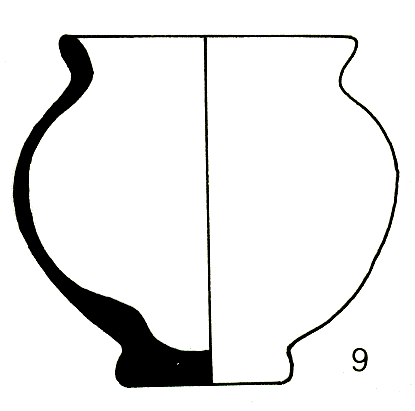 Pot de forme elliptique aplatie ; encolure verticale, concave, rebord épaissi à l'extérieur, lèvre convexe ;