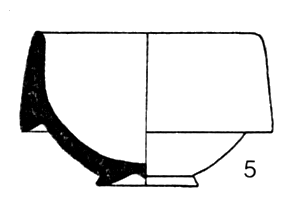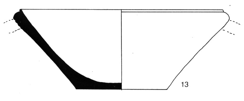 rebord incliné vers l'extérieur, lèvre ronde ; base élargie, assise concave ;