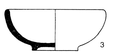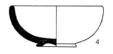 Bol de forme hémisphérique ; lèvre ronde ; pied en couronne bas aux parois divergentes rectilignes ;