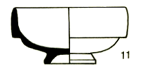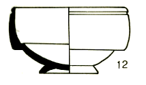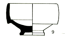 Bol de forme hémisphérique ; lèvre ronde ; pied en couronne bas ; collerette sur le milieu de la panse ; céramique tournée ; inclusions moyennes: quartz irrégulier en proportion moyenne, mica ; surface avec couverte.