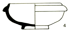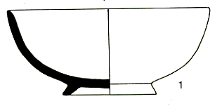 Jatte de forme hémisphérique ; lèvre en biseau ; pied en couronne bas ; céramique tournée, pâte de couleur jaunâtre, orangée en surface ; inclusions fines: quartz irrégulier en proportion moyenne, mica ; surface avec couverte.