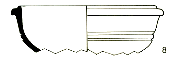 - Imitation d'une forme sigillée Curle 21 datée de l'époque Antonine (OSWALD, 1920, pl. LXX III, n° 4).