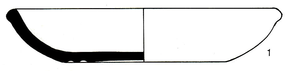 Assiette aux parois divergentes convexes ; rebord épaissi à l'extérieur, lèvre convexe ; base portante, assise tournée ; céramique tournée, pâte de couleur grise, orangée en surface ; inclusions trés grossieres: quartz irrégulier abondant, mica ; surface brute.