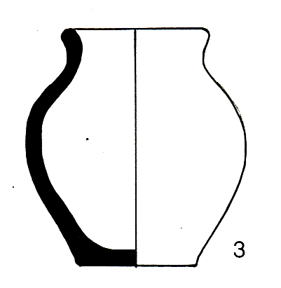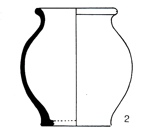 Pot de forme ovoide ; encolure verticale, concave, lèvre convexe ; base étirée, assise plane ; céramique tournée, pâte de couleur grise, orangée en surface ; inclusions très grossieres: quartz irrégulier abondant, mica ; surface brute.