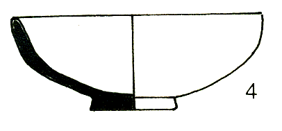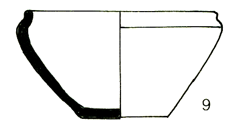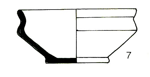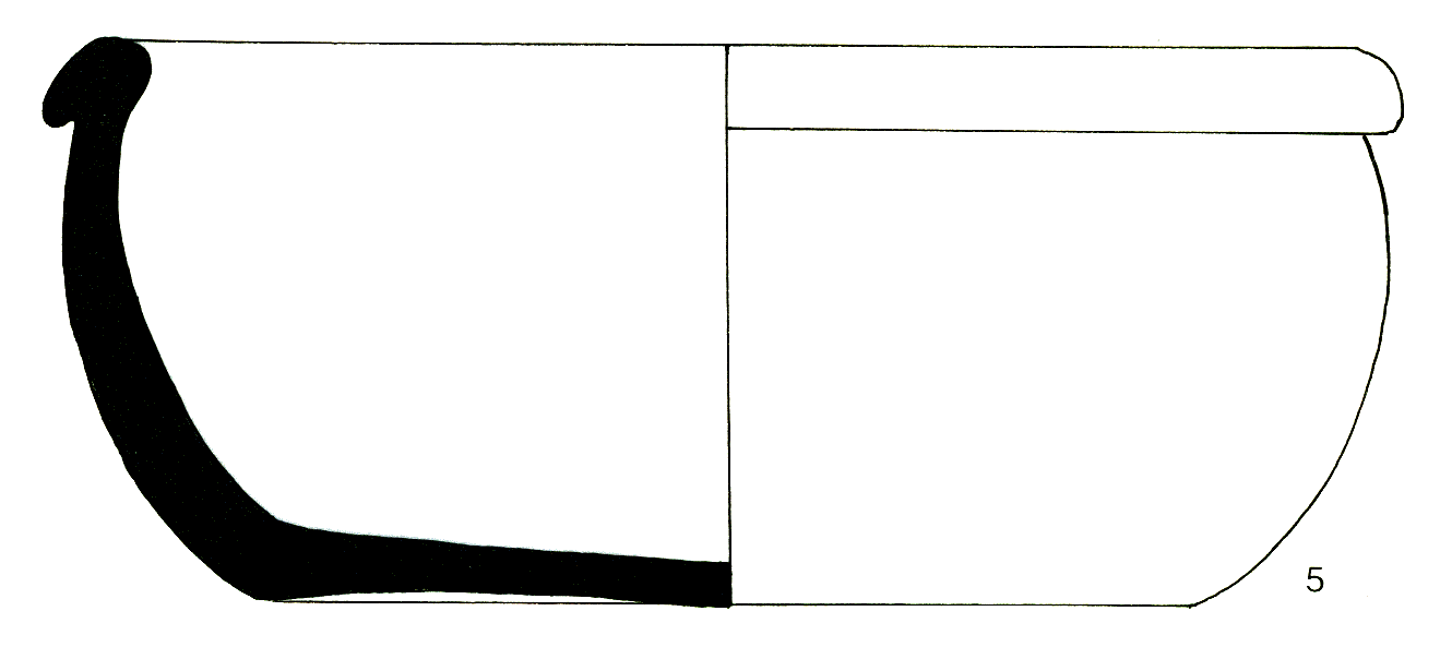 Bol aux parois divergentes convexes ; rebord incliné vers l'intérieur, lèvre ronde ; base portante, assise plane ; céramique tournée, couleur brune en surface et sur les cassures ; inclusions moyennes: quartz ; surface lissée.
