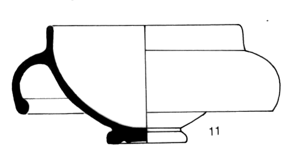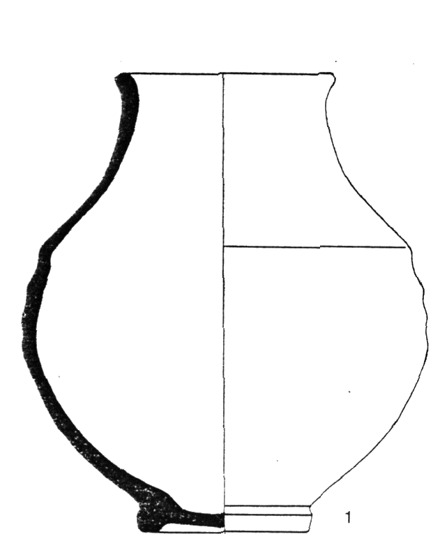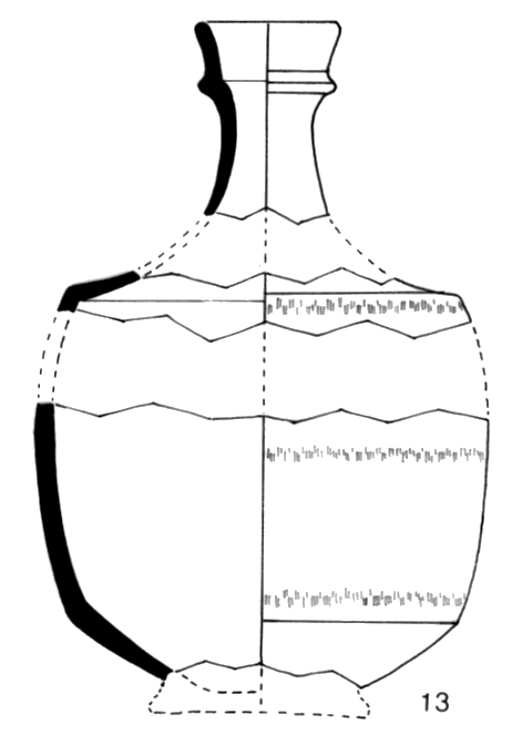 collerette s'attachant sur le haut de la panse ; céramique tournée, pâte de couleur grise, brune en surface ;
