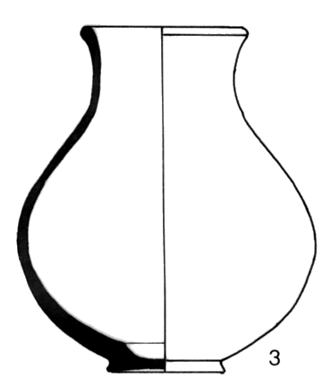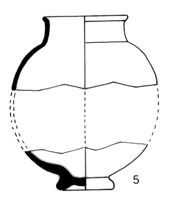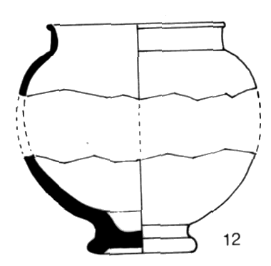 Pot à panse sphérique ; encolure rentrante concave, lèvre ronde ; base éargie avec une assise concave.