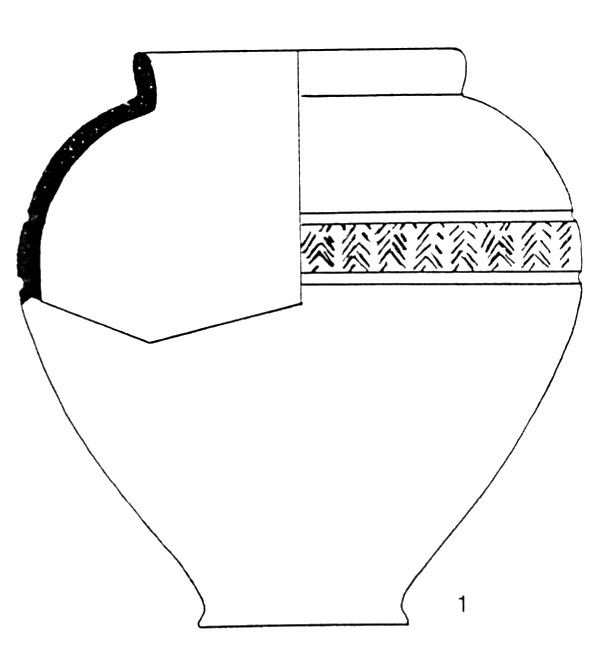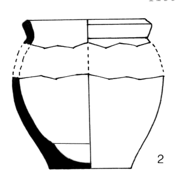 Pot de forme sphérique ; encolure verticale, rectiligne, rebord en rouleau, lèvre ronde ;