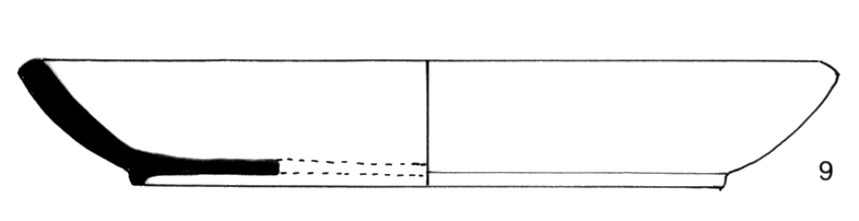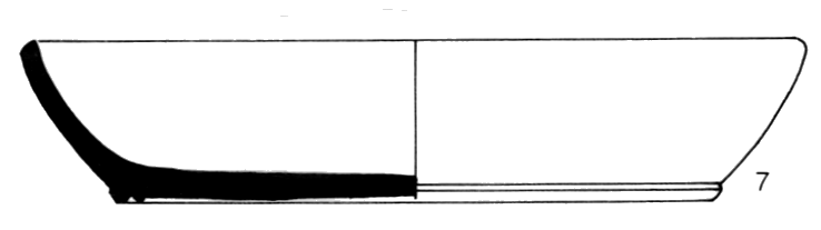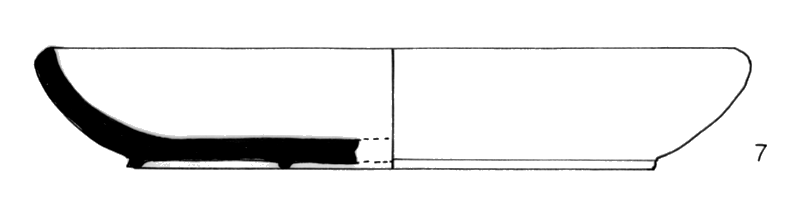 base élargie, assise concave ; céramique tournée, pâte de couleur grise, noire en surface ;
