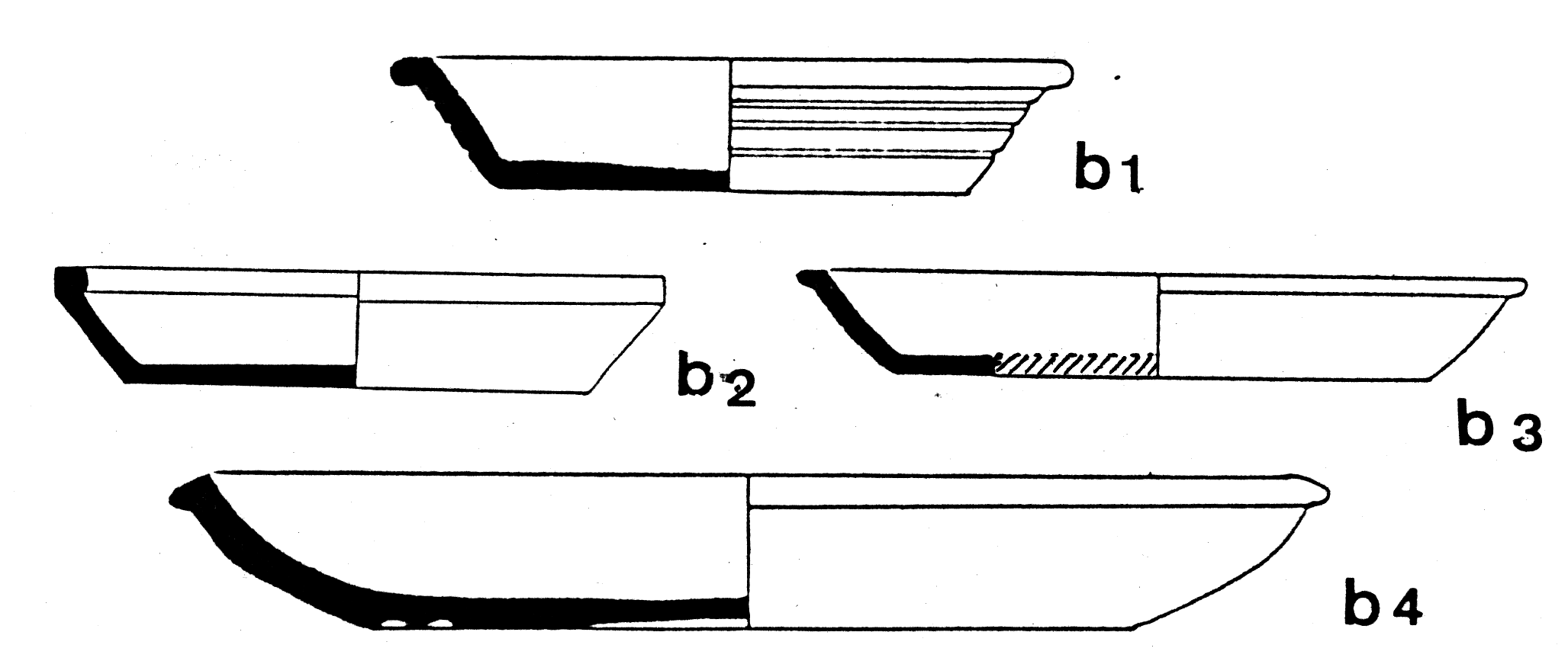 b1 et b4 (bord en rouleau ou épaissis, proviennent de sépultures datées de la seconde moitié du IIe
